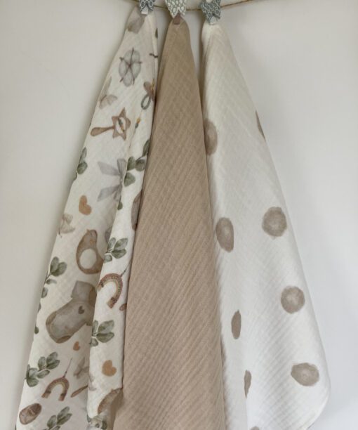 Prekių krepšeliams, kurių suma 20 eur* ir daugiau, pridėsime muslino merliuką** (35×35 cm) su medvilnine kilpele (praktiškas tutuko / kramtuko laikiklis), DOVANŲ ♡