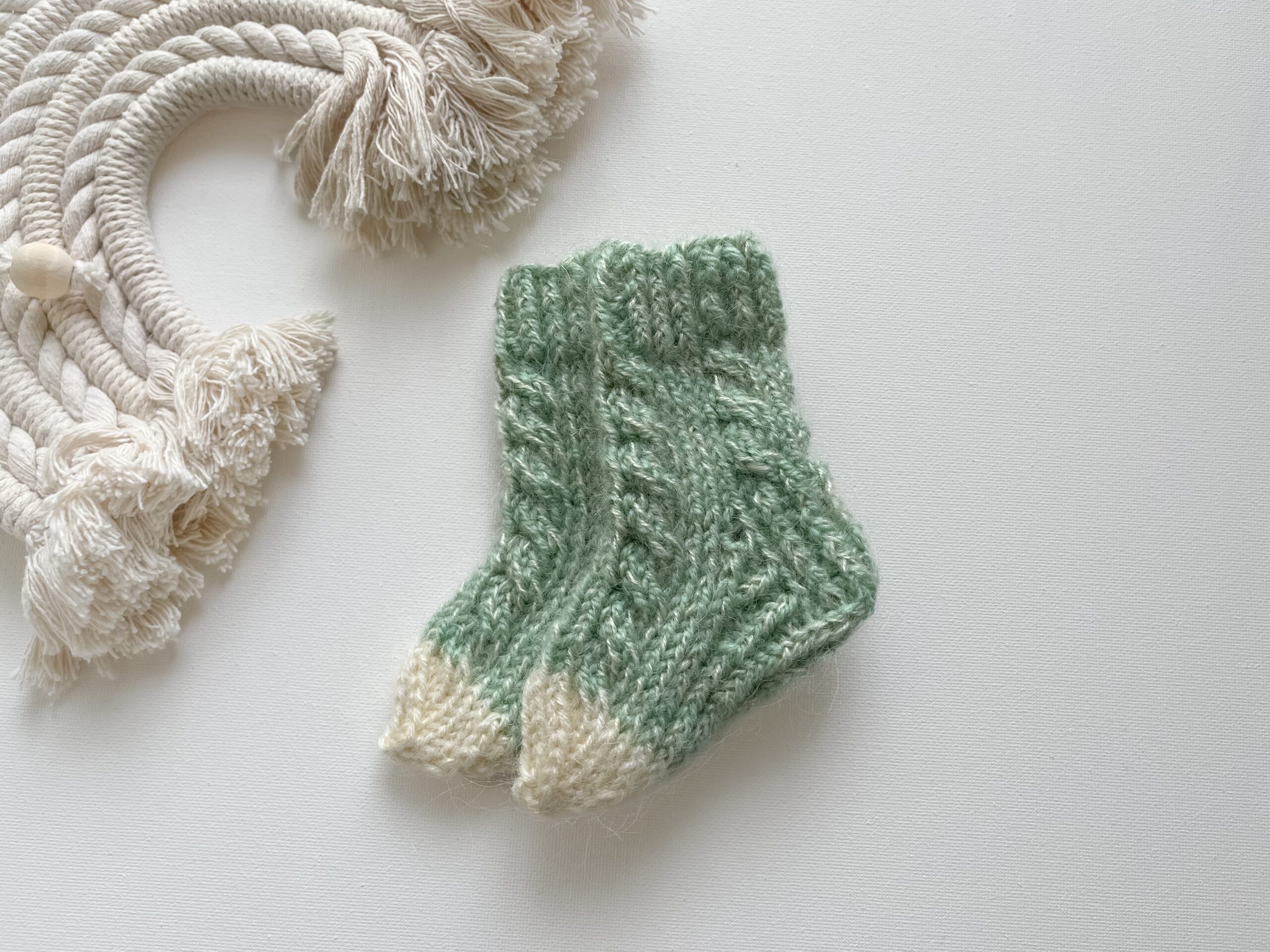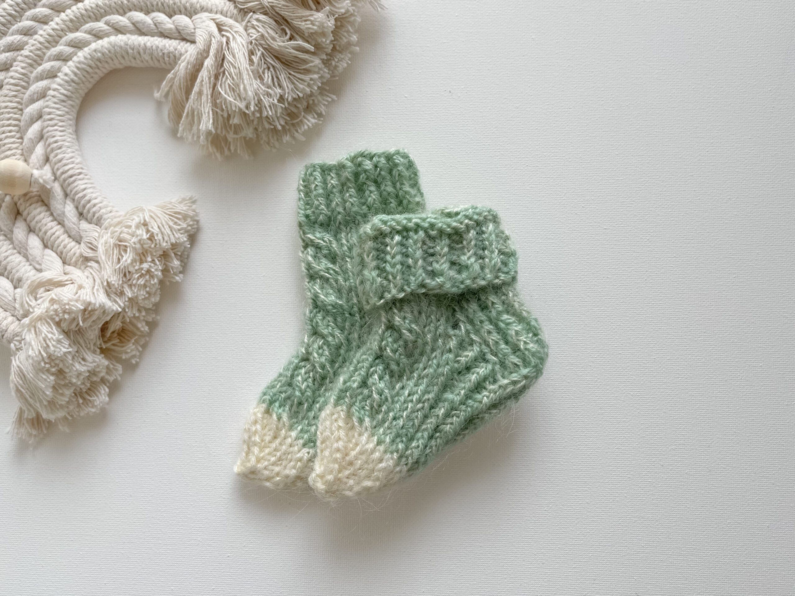 Vilnonės kojinės 0-3 mėn. "Kreminės su žėručiu"
