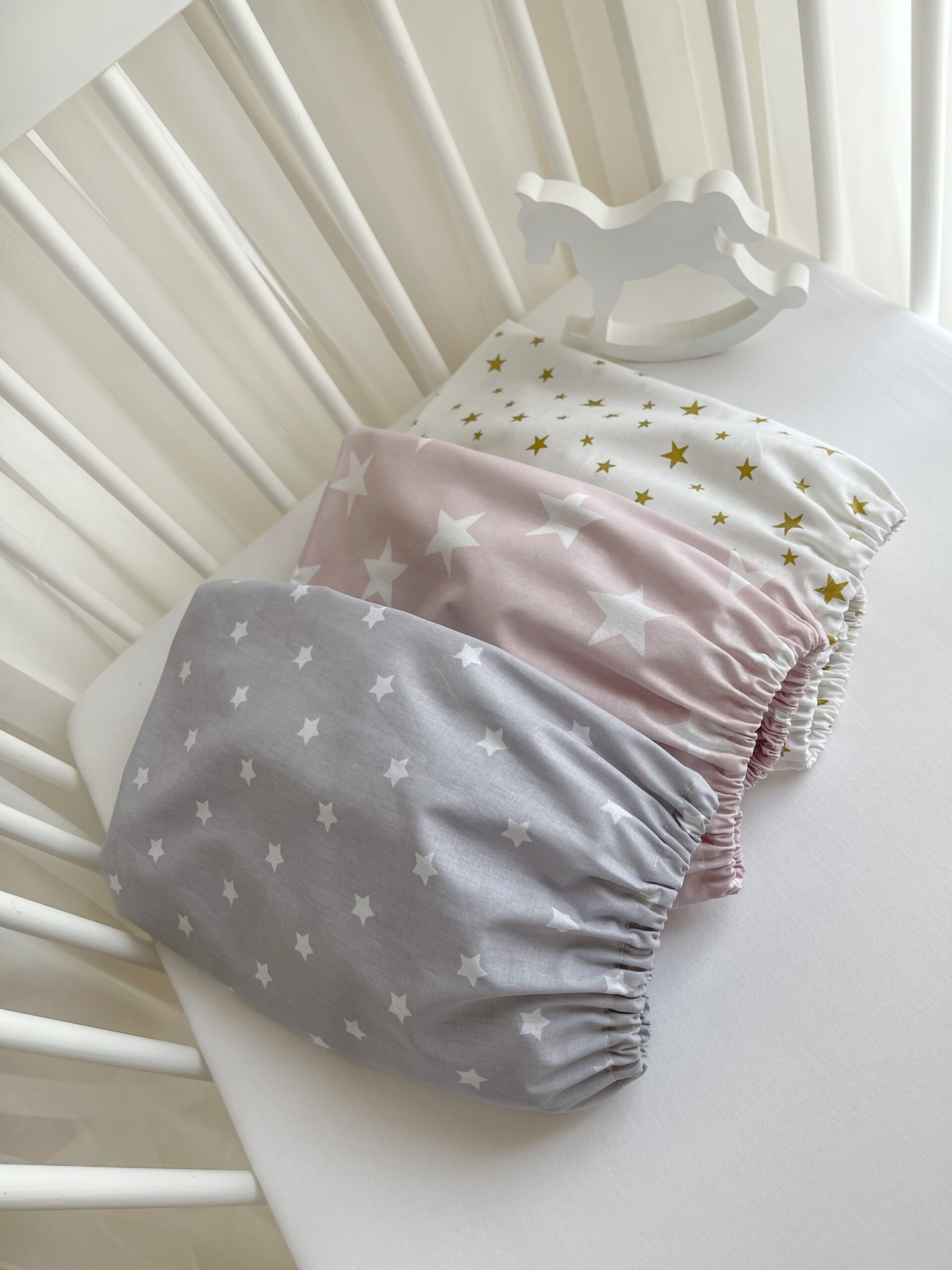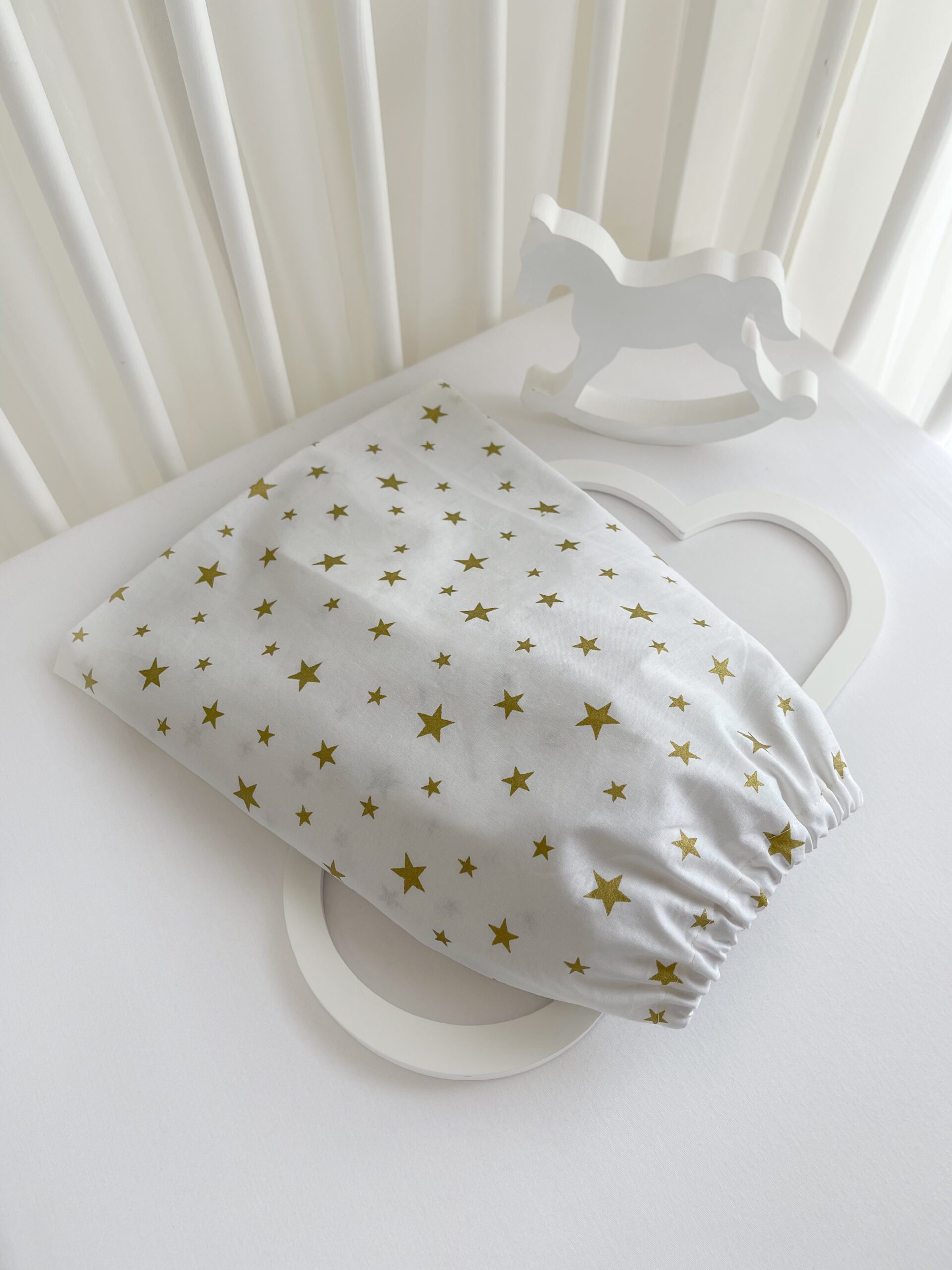 Paklodės audinys švelnus, kvėpuojantis ir malonus jautriai kūdikio odelei, nuo pirmųjų dienų. Gumelė aplink paklodę užtikrina, kad ji tvirtai laikytųsi ant čiužinuko net ir mažyliui aktyviai judant. Poplino medvilnės audinys tvirtas ir ilgaamžis, bet tuo pačiu išlieka natūralus ir pralaidus orui. Žvaigždelės spindi aukso spalvos žėručiu.