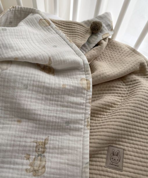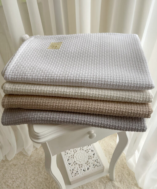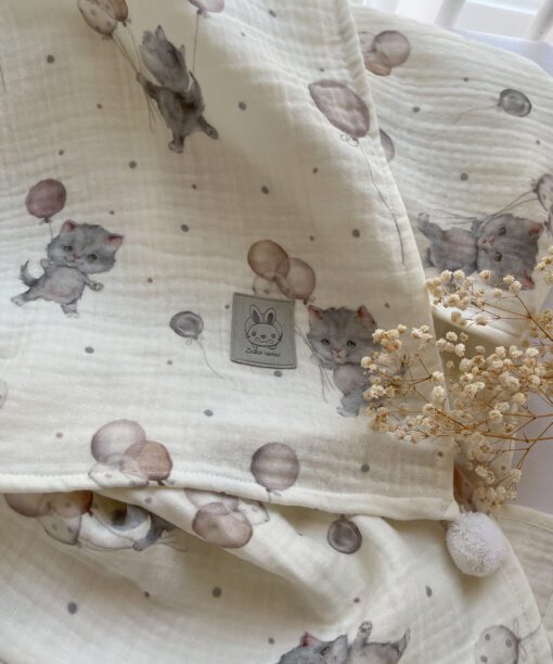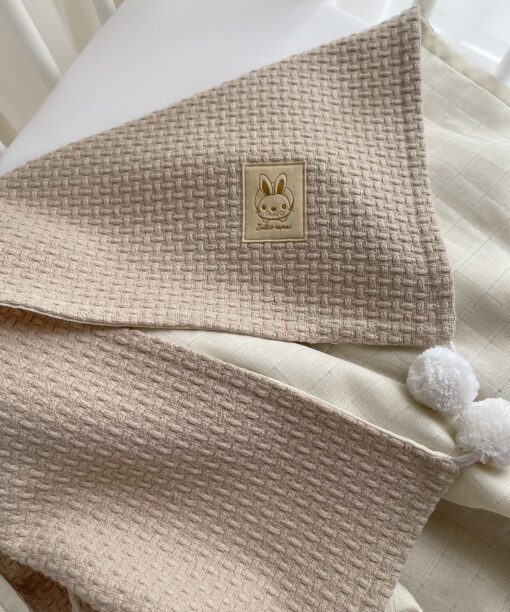 Šis pledukas pasiūtas iš sertifikuotų muslino ir ornamentų raštu austos medvilnės audinių. Austos medvilnės audinys minkštas, muslinas – švelnus. Pledukas ilgesnis jei įprastai, kad galėtumėte juo apkloti ir ūgtelėjusį mažylį sportiniame vežimėlyje.