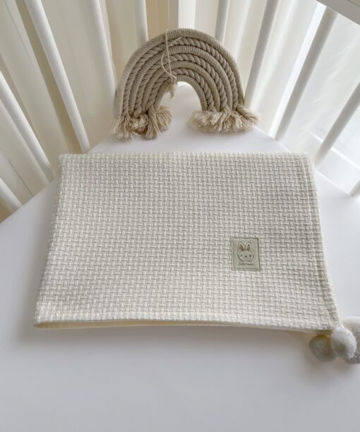 Šis pledukas pasiūtas iš sertifikuotų muslino ir ornamentų raštu austos medvilnės audinių. Austos medvilnės audinys minkštas, muslinas – švelnus. Pledukas ilgesnis jei įprastai, kad galėtumėte juo apkloti ir ūgtelėjusį mažylį sportiniame vežimėlyje. Turime ir derantį, muslino spalvos vystykliuką.