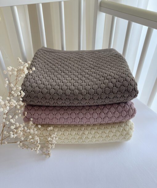 Besiruošiant, į kraitelius kūdikiams, kaip vieni iš labai reikalingų daiktų, atkeliauja megzti pledukai. 100% merino vilnos pledukai kūdikiams megzti rankine mezgimo mašina iš minkštų, švelnių, kokybiškų siūlų, todėl tinka mažyliams nuo pat gimimo. Pledukai šilti, minkšti, švelnūs, visiškai „nekanda”.